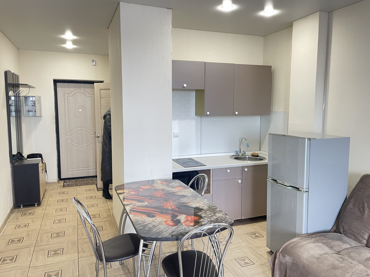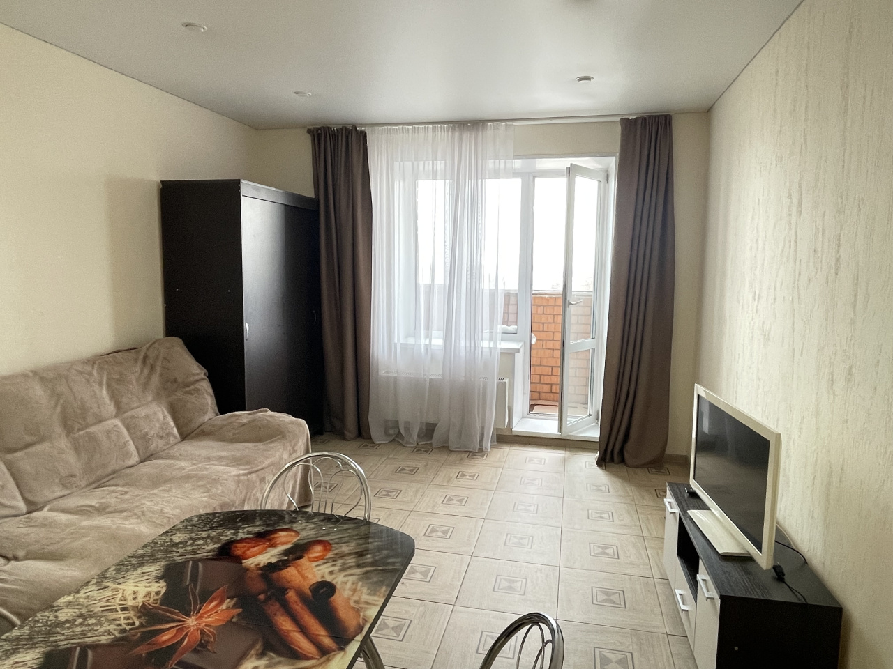 Сдам теплую, чистую квартиру – студию с большой застекленной лоджией. Хороший ремонт, пол – кафель, натяжной потолок, санузел в кафеле. Полностью укомплектована для длительного проживания.